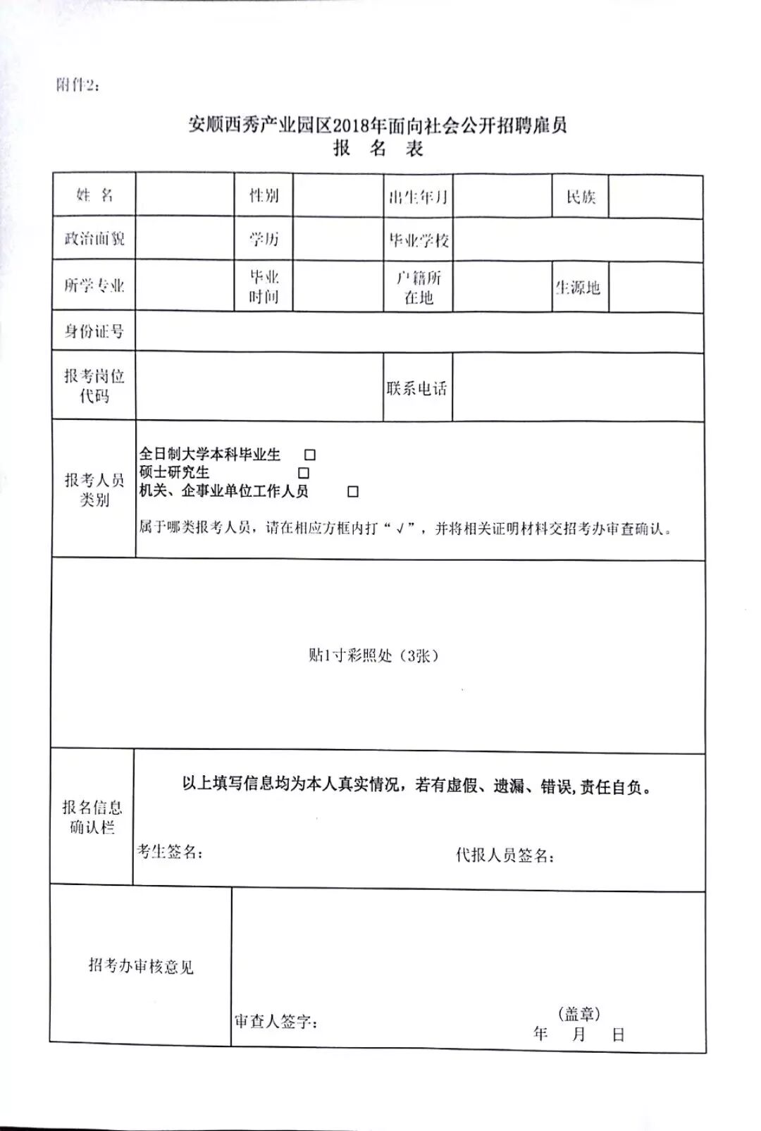 2.安顺西秀产业园区2018年面向社会公开招聘雇员报名信息表.xls