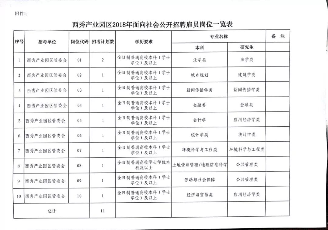 具体岗位要求详见《西秀产业园区2018年下半年面向社会公开招聘雇员岗位一览表》(见附件1)。