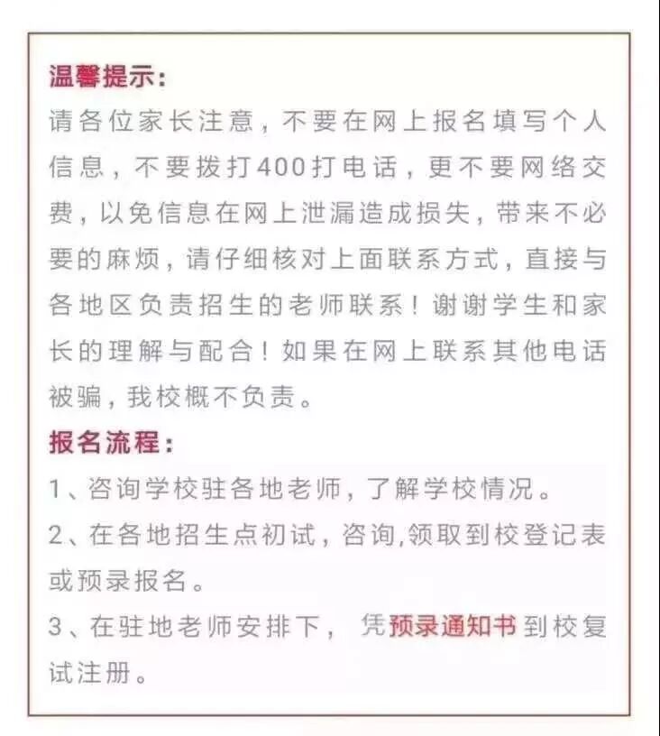 3、报名资料:学生户口本或身份证原件及复印件,一寸照片8张,家长陪同入校。(详情咨询招生老师)。
