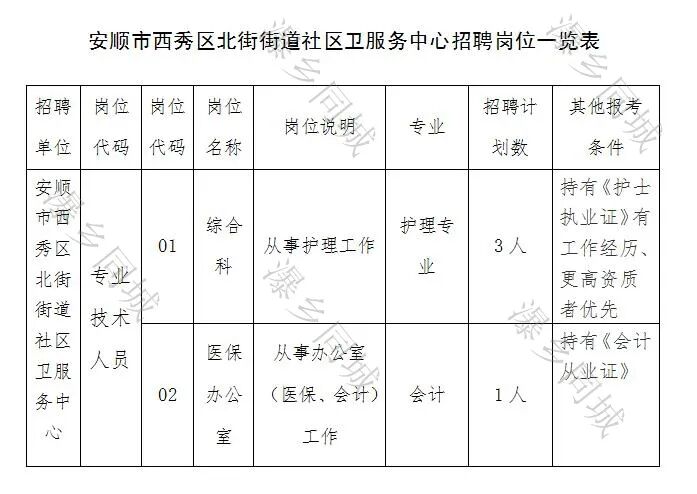 大专可报!西秀区北街街道社区卫服务中心招聘4人!
