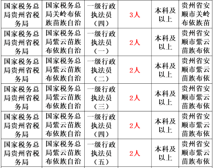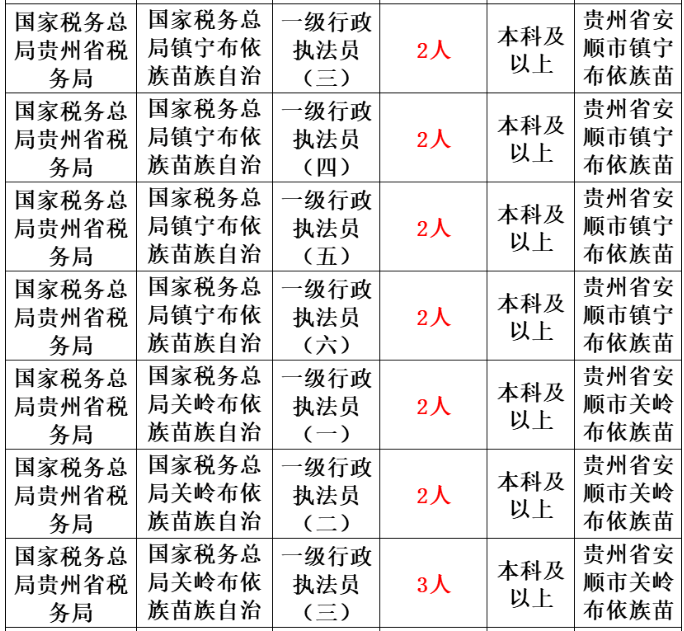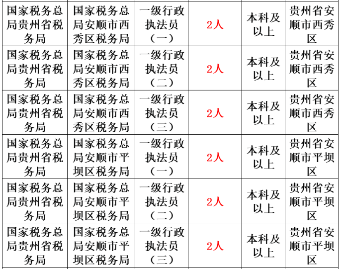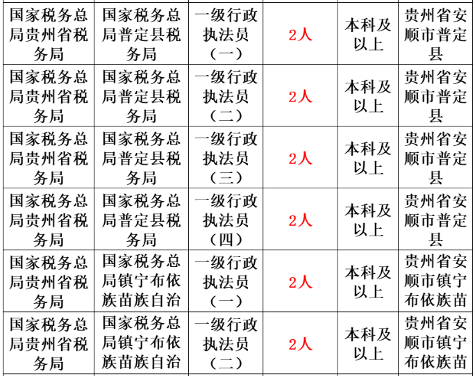 税务局岗位表